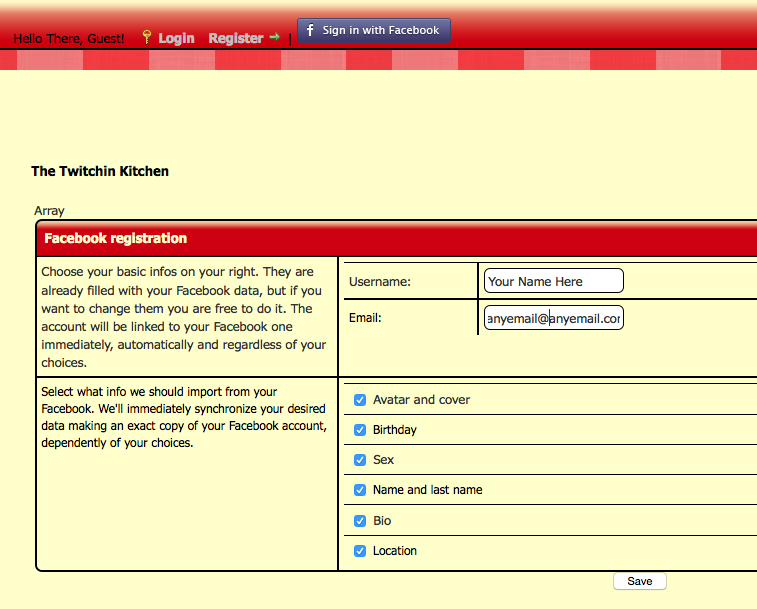 - You will be taken to a page where you can decide what you want shared with this site and Facebook. You can also choose to use an anonymous user name instead of your real one for this site. (we have a real name show option in your User CP should you choose to share that later). We value your privacy here!